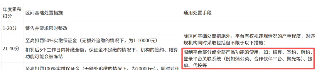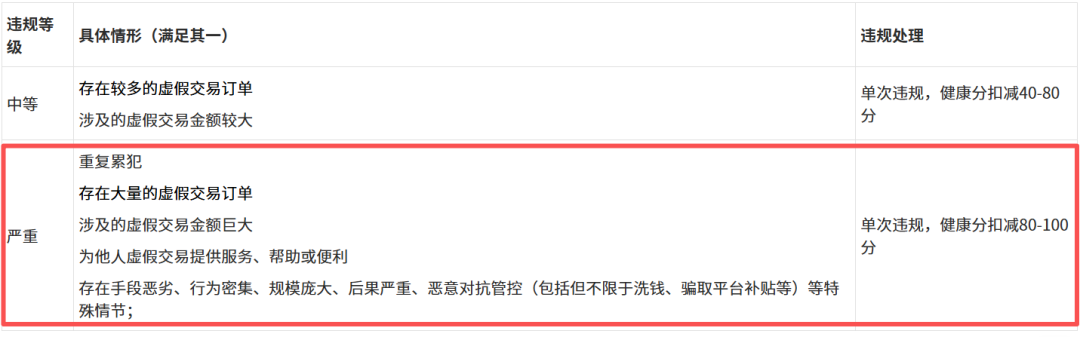 依据新规,若机构存在较多虚假交易订单或涉及金额较大,将触发40至80分的健康分扣减。而若年度扣分达到41分,将被处以包括最高100%的保证金扣罚,以及签约、结算等核心商业功能的冻结。