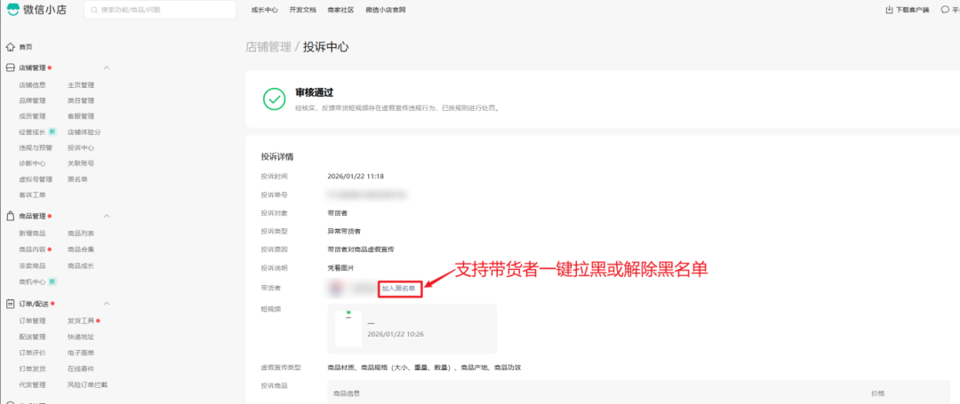 这是微信小店在原有针对用户和带货达人的投诉机制基础上,首次将治理触角明确延伸至B端生态合作伙伴。