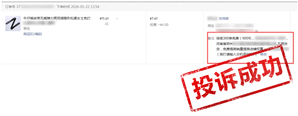 诱导式违规:用户在订单备注中故意夹带违规信息(如诱导刷单),导致商家无法发货或发货即违规,蓄意破坏商家经营指标。