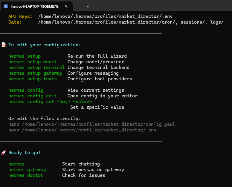 cd ~/.hermes/hermes-agentsource venv/bin/activatehermes