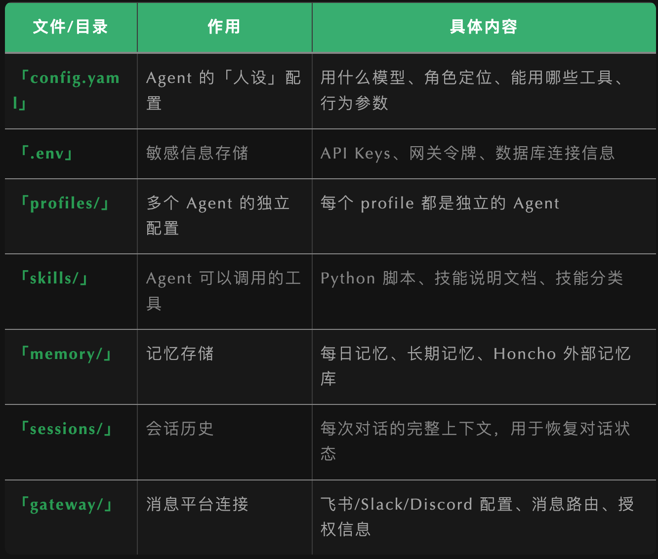• profiles/ 就是你的「员工花名册」,每个 profile 是一个独立的 Agent