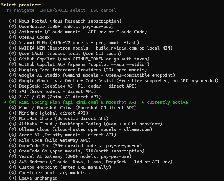 在介绍教程之前,有必要推荐下 Kimi 刚开源的模型 K2.6,代码能力大提升,看到 Hermes 官方都下场安利了,所以我也用K2.6来演示一下如何启动这只 Agent 军团。